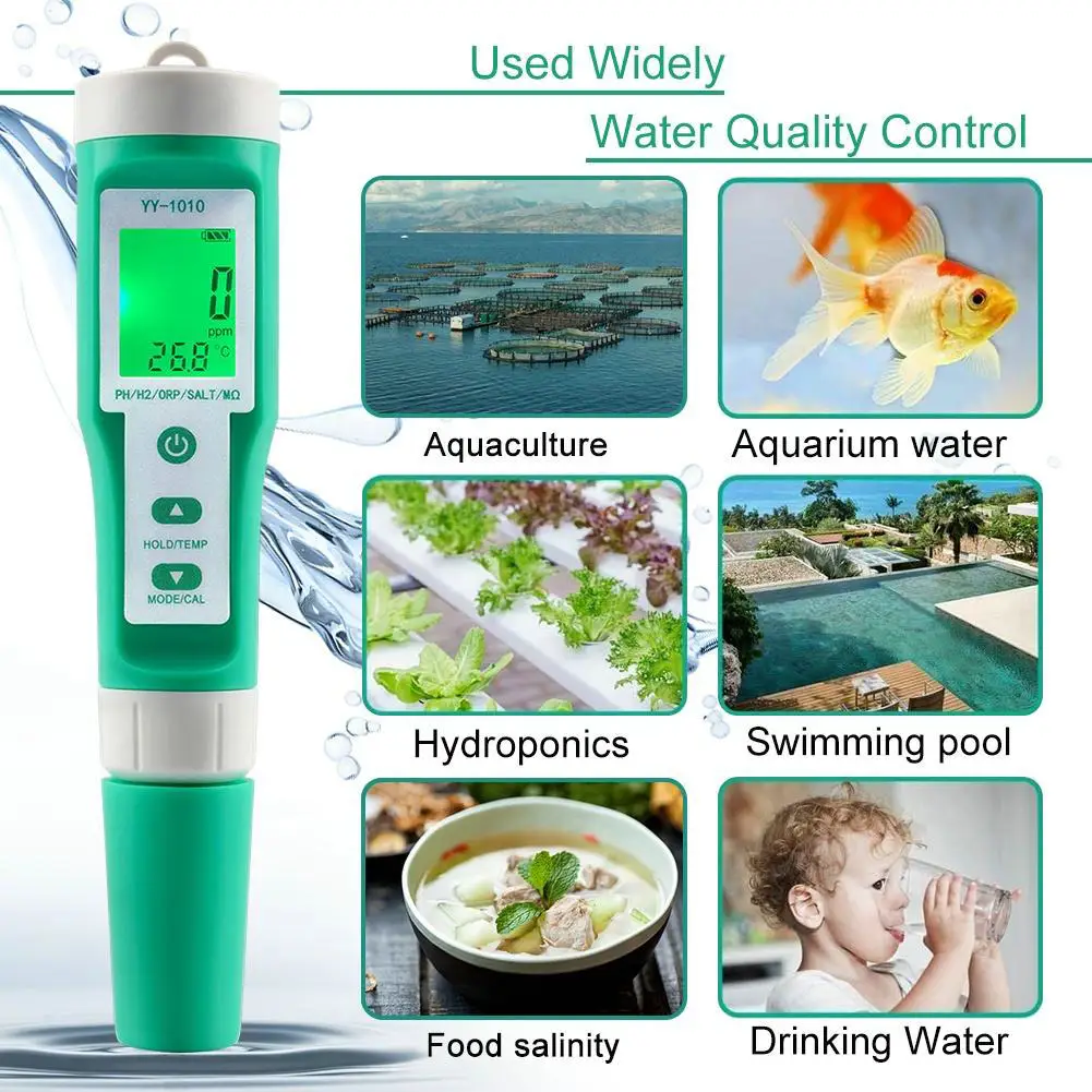 food,aquariums and swimming pools, which also includes PH ORP EC H2 S.G TDS SALT TEMP MΩ 10 functions .