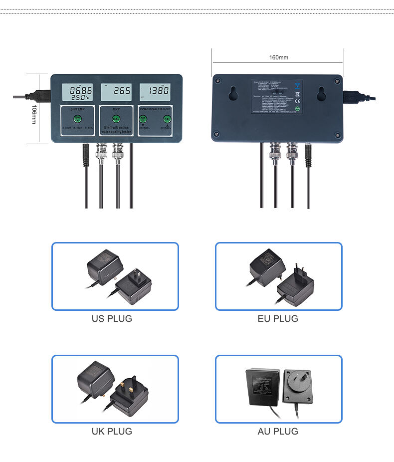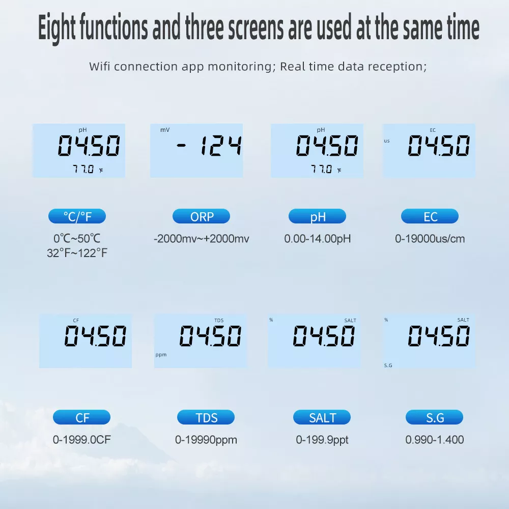1. Pengujicoba Multifungsi 8 dalam 1: PH/EC/TDS/ORP/GARAM/S.G/CF/Suhu.