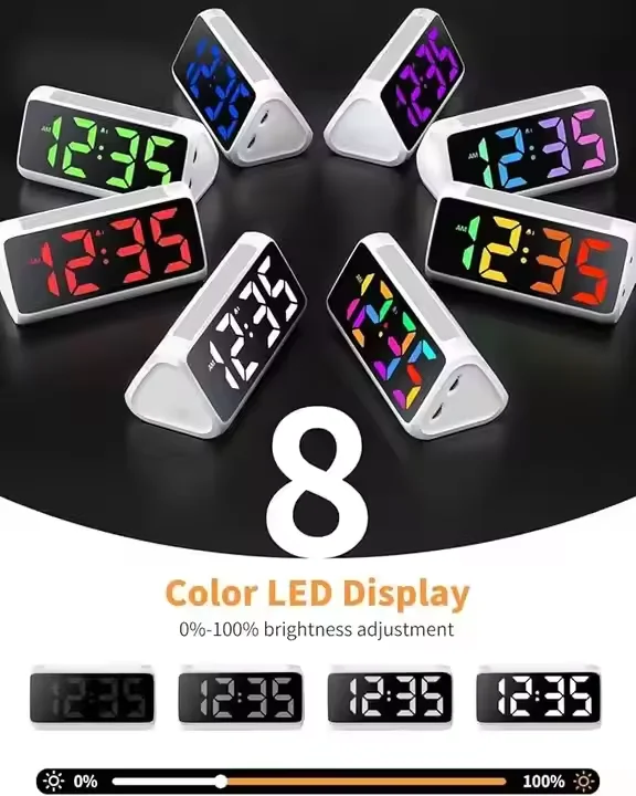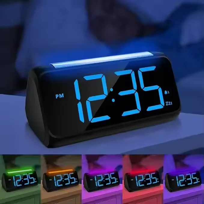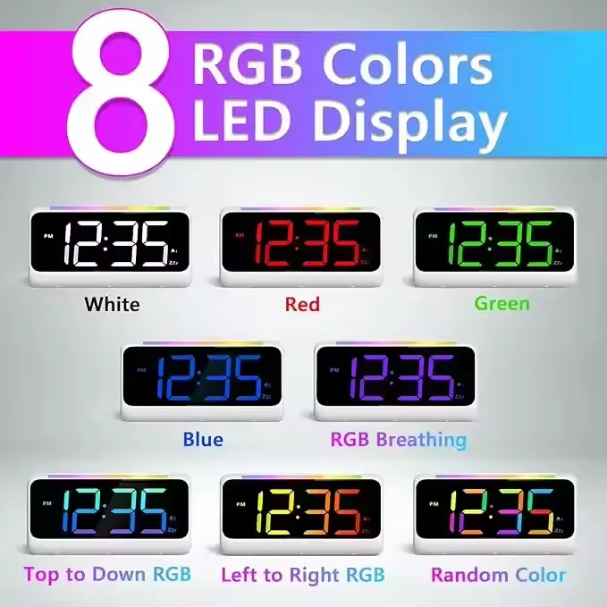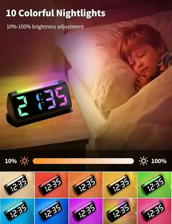 Relógio Digital com Luz Noturna RGB Tela Colorida Exibição ABS Relógio de Alarme em Preto e Branco OEM e ODM Suportados